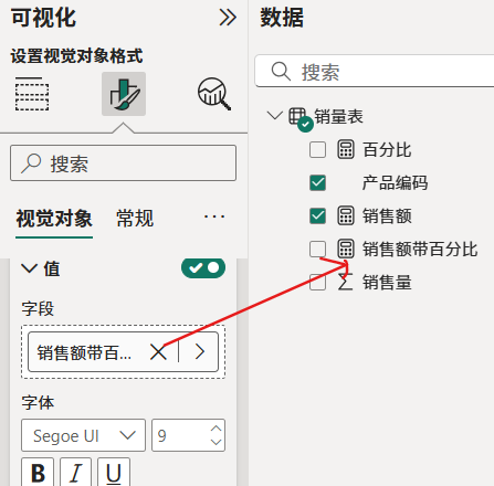 销售额带百分比 = [销售额]&"("&'销量表'[百分比]&")"