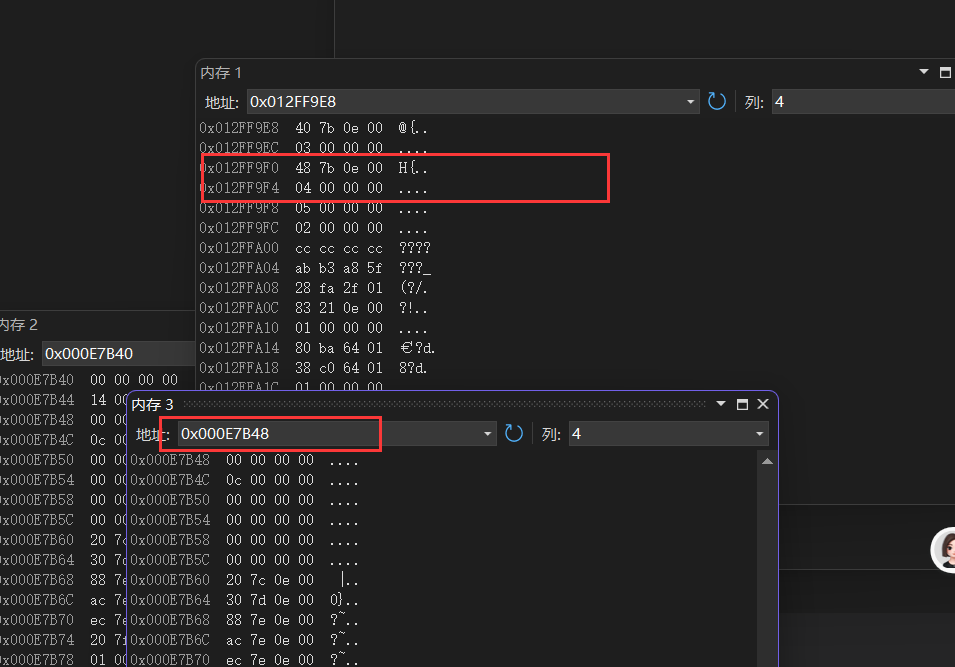 这俩个指针是啥呢?我们可以多开几个内存窗口查看一下。