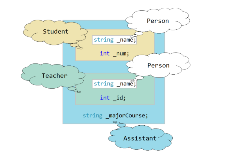 为了解决菱形继承的二义性和数据冗余问题,出现了虚拟继承。如前面说到的菱形继承关系,在Student和Teacher继承Person是使用虚拟继承,即可解决问题。