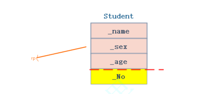 派生类的指针赋给基类的指针,该父类的指针指向派生类中父类的成员变量。