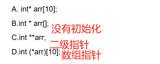 int (*arr)[10]——>先定义了指针*arr,int和[10]表示指针arr指向含有n个int类型的数组