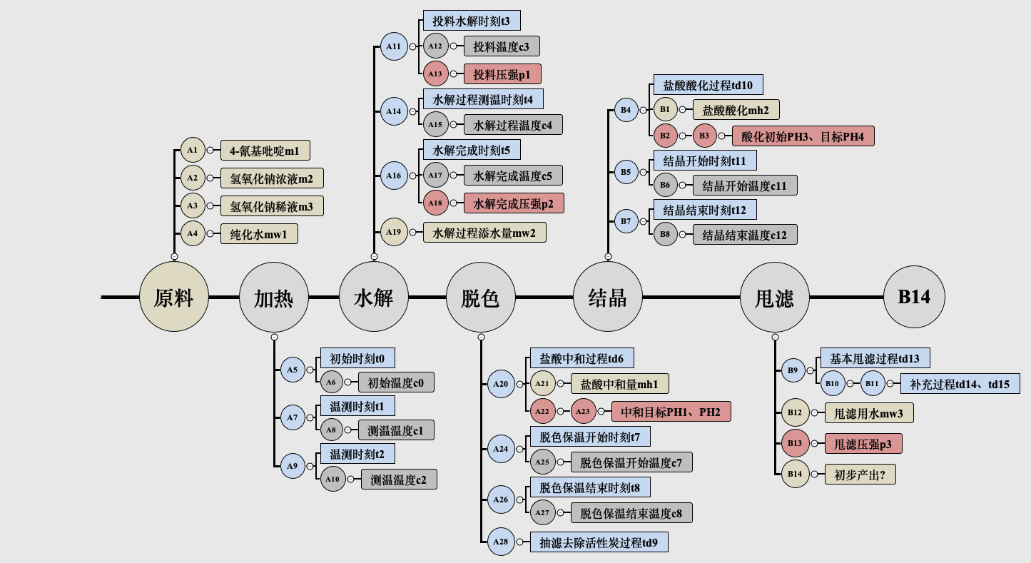 在化工生产领域,准确预测产品收率对优化工艺流程、降低生产成本具有重要意义。本文以异烟酸生产为研究对象,通过机器学习方法构建预测模型,在包含10个生产步骤、42个工艺参数的数据集上实现高精度收率预测。该方案在工业竞赛中斩获冠军,本文将深度解析其技术实现细节。