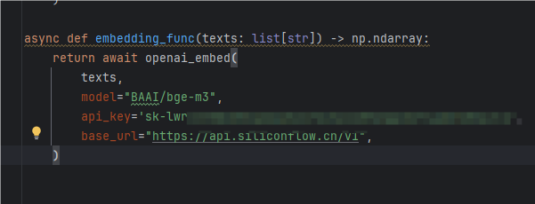 需要三个主要部分:调用处理大模型、调用嵌入模型,运行lightRAG的主代码(标志是会执行rag.insert(f.aread这一句)