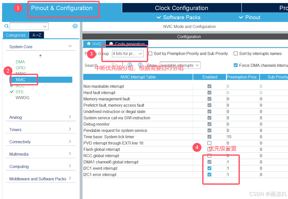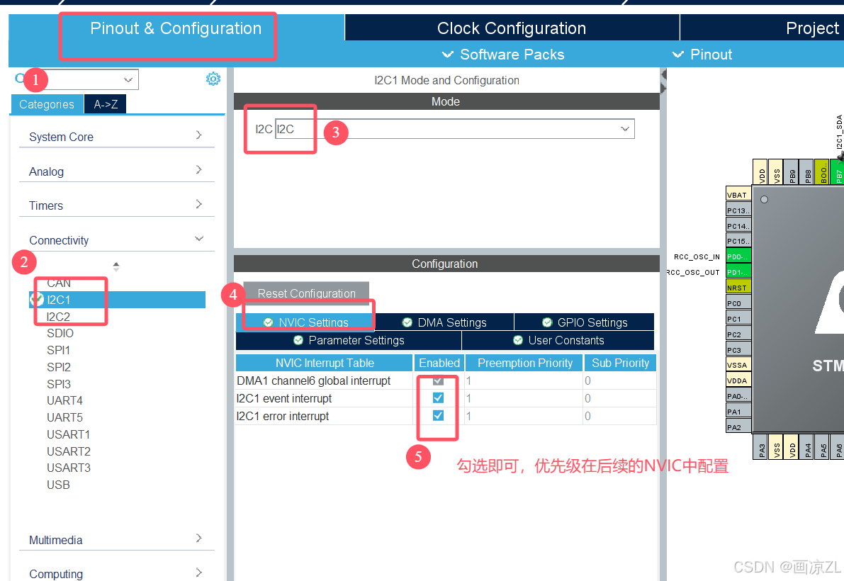 开启中断可以进行IIC中断收发,再配置DMA通道可以进行IIC+DMA收发,如果都不加,就只能进行IIC阻塞收发。