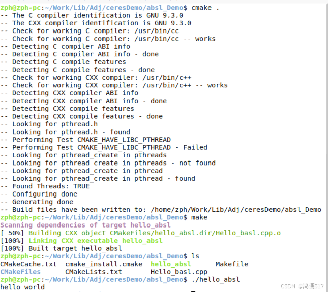 那个成功案例是解决了这个失败后,这里的一个号是编译ceres时强制设置进去的,所以helloworld都编译不过去
