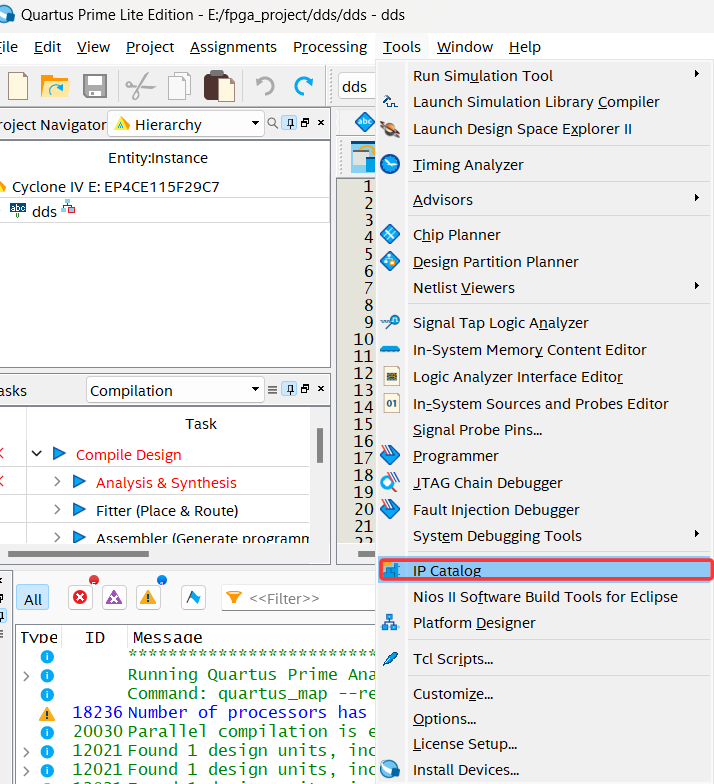 1)在QuartusPrime主界面选择Tool一IPCatalog命令,在查找框内输入ROM,IP核目录(IPCatalog)栏