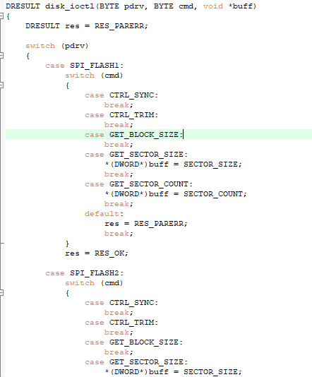 fres = f_mkfs("1:", NULL, buffer, 4096); // 创建文件系统