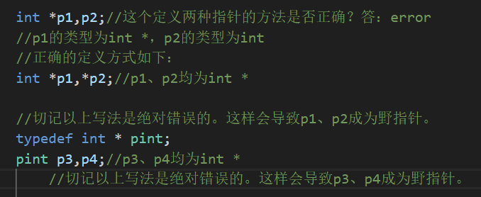 如图所示的代码中,变量p与&a实际上是等价的,因此可以称p为指针变量,而int *是p的类型。我们可以得出以下结论