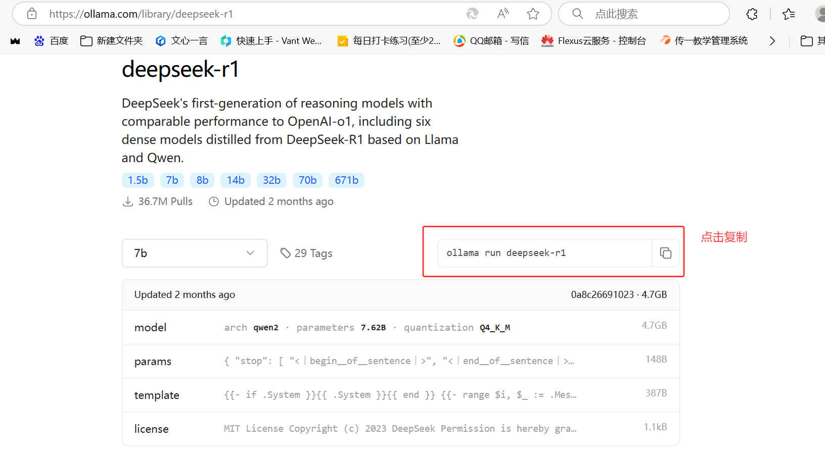 打开ollama网址会看到这边有个deepseek-r1,点击进去