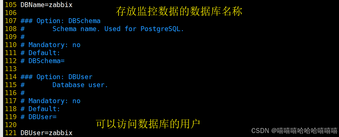 121 DBUser=zabbix #访问数据库的用户名称