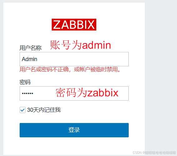 安装完成后,默认的登录账号和密码为:Admin/zabbix