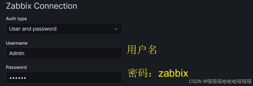 Zabbix Connection -> Username 输入 Admin ,Password 输入 zabbix