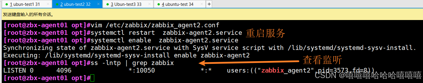 ss -lntp | grep 10050 #客户端 zabbix-agent 默认监听 10050 端口