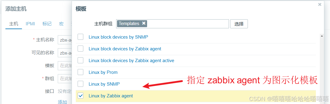 【模板】搜索 Linux ,选择 Linux by Zabbix agent