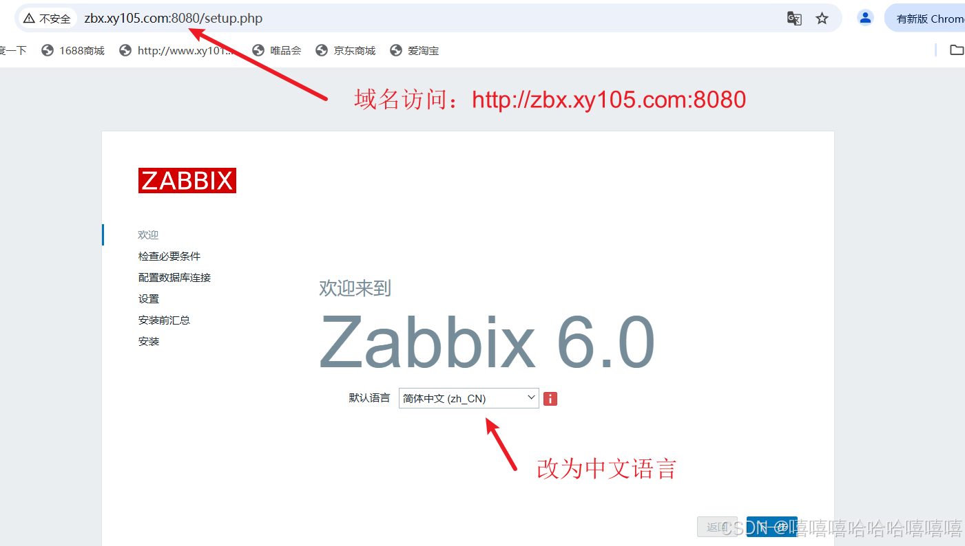浏览器访问:http://zbx.xy105.com:8080
