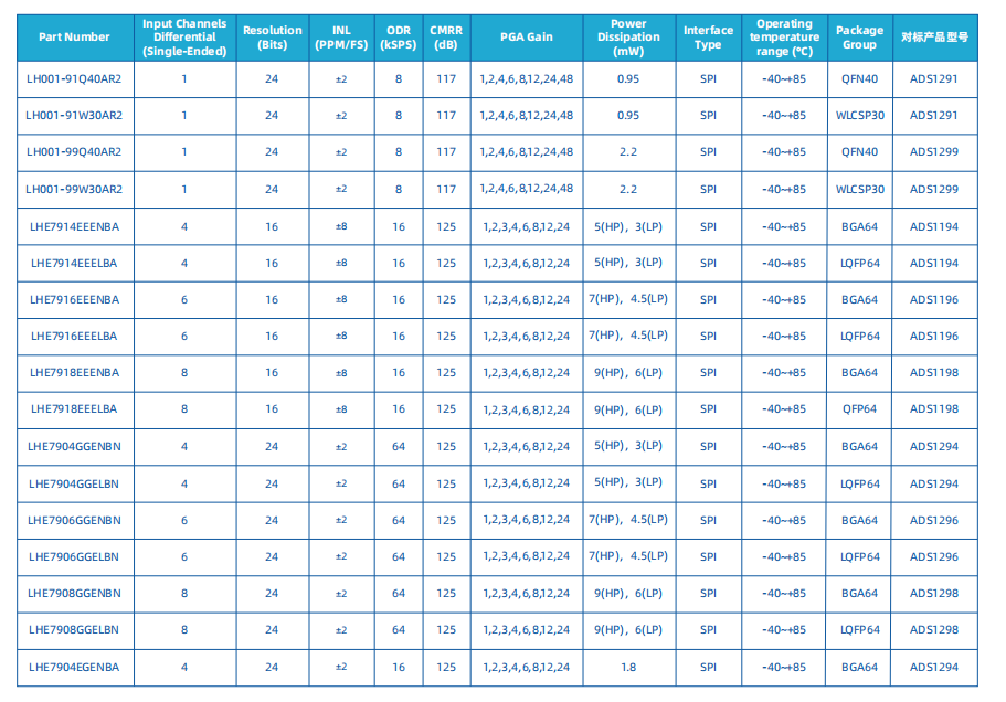 总结:LHE7909是一款高集成度、低噪声、多通道ADC,特别适合医疗电子和生物信号采集,具有优异的噪声性能和灵活性,可降低系统设计复杂度与成本。