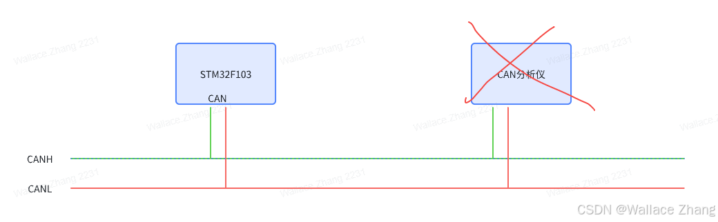 我尝试在物理层上制造问题,将CAN总线的CANH与CANL短接就能让STM32F103开发板进入Bus-off离线状态。