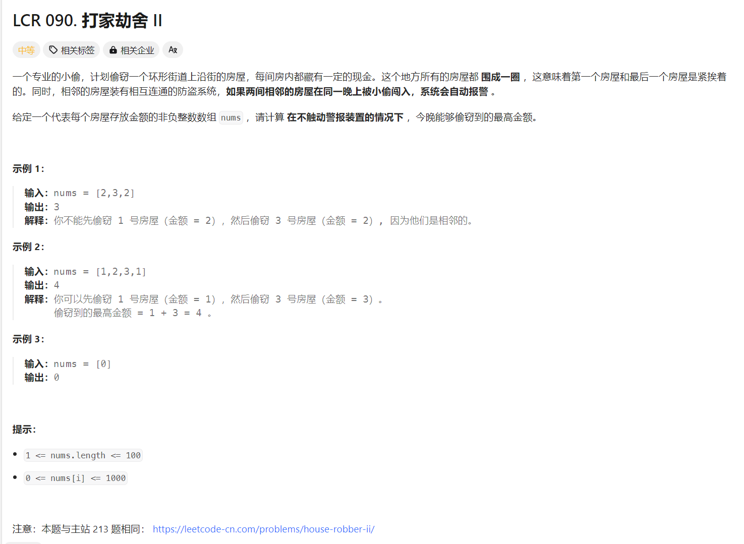 LCR 090. 打家劫舍 II - 力扣(LeetCode)