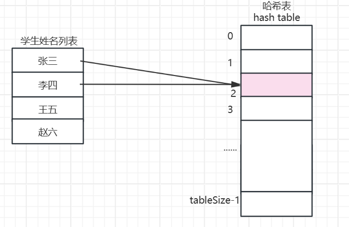 张三、李四都落在索引下标为2的地方,这个时候就发生了哈希冲突