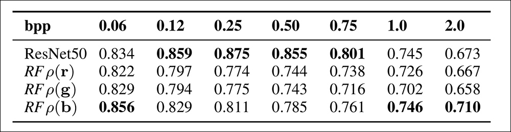 研究人员分析了图像潜在表示对舍入操作的响应情况。如果图像已经经过量化处理,其潜在结构会与舍入后的值呈现出可测量的对齐模式。他们在这个分析的基础上训练了一个随机森林分类器,并将其性能与直接在图像像素上训练的ResNet50神经网络进行了比较。