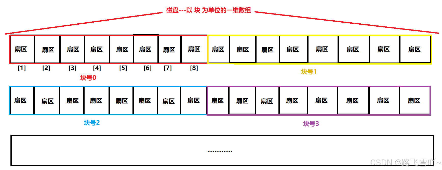 所以,从现在开始,磁盘就是一个 元素为扇区 的一维数组,数组的下标就是每一个扇区的LBA地址。OS使用磁盘,就可以用一个数字访问磁盘扇区了。