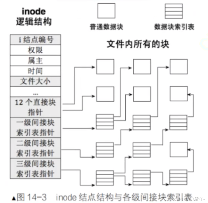 • i节点表:存放文件属性 如 文件大小,所有者,最近修改时间等;