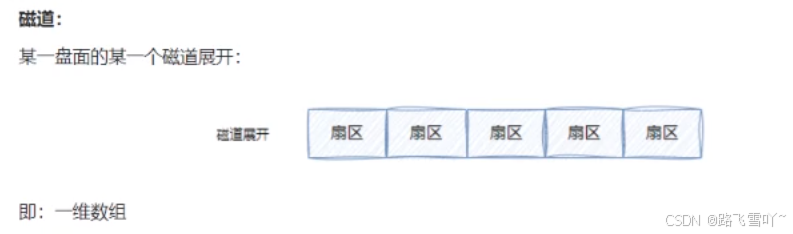 b. 磁头定位好一个磁道后,盘面在进行旋转时,就可以把各个不同的扇区,依次放在磁头的正下方,让磁头来确定一个扇区上面的 01 值;