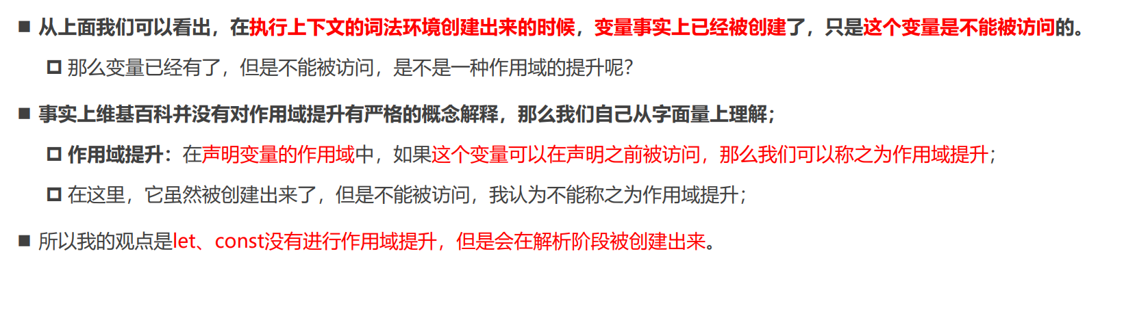// 3.暂时性死区形成之后, 在该区域内这个标识符不能访问