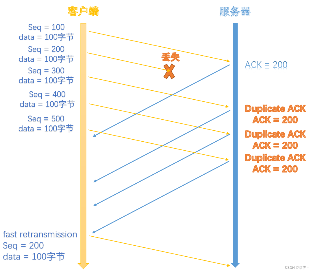 这种设计基于实践经验:三次冗余 ACK 能有效区分数据包丢失与网络延迟导致的乱序。若仅收到一两次冗余 ACK,更可能是短暂的网络延迟,而非丢包,此时触发重传会增加不必要的流量。