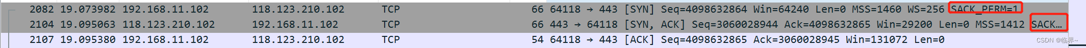 SACK的开启需要在三次握手中进行一个协商