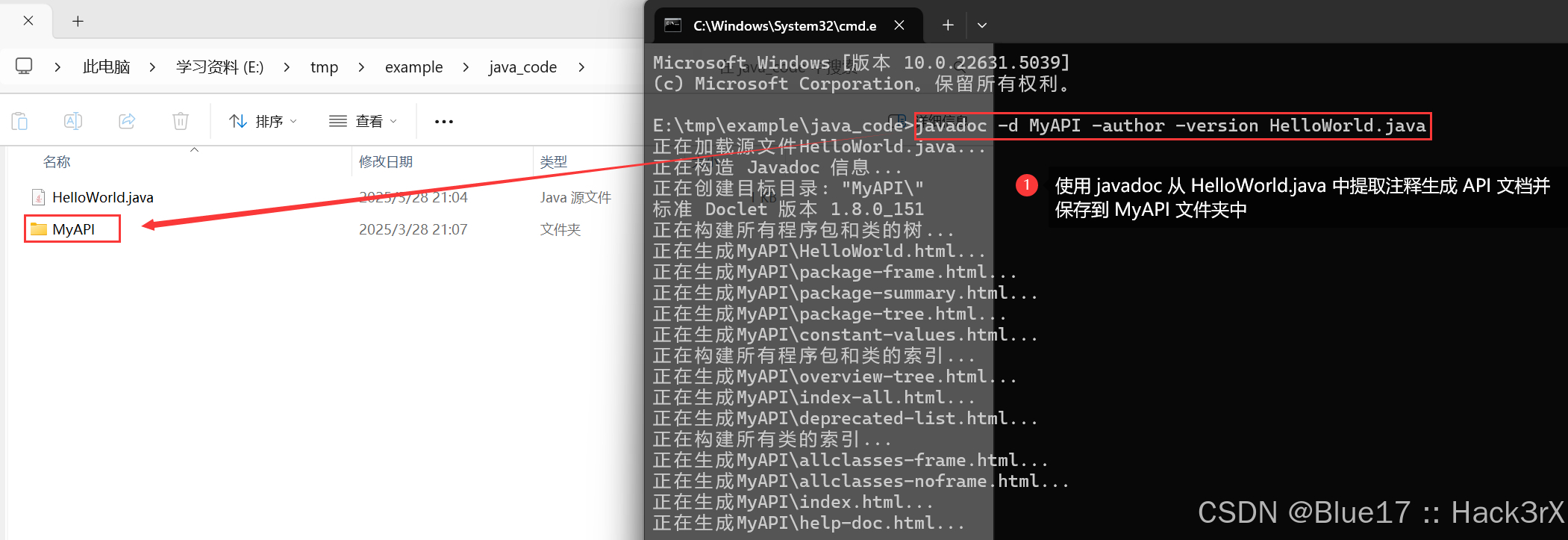 在上面一小节中我们编写了一个文档注释的案例,那么本小节,我们尝试使用 javadoc 从中提取出注释内容。