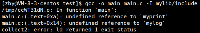 当我们加了“-I”选项后,我们发现之前找不到头文件的报错消失了!!!但是新的问题又出现了!!!即使,gcc已经找到了静态库的头文件的位置了,但gcc没办法调用静态库中的函数!!!所以我们还要告诉gcc这个静态库的方法调用的库的绝对或相对路径!!!如果要告诉程序我们的静态库在哪,可以加个“-L + [.so库绝对或相对路径]”