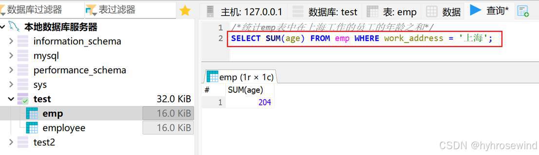 # 授予hyh@localhost用户的test数据库的所有表的权限