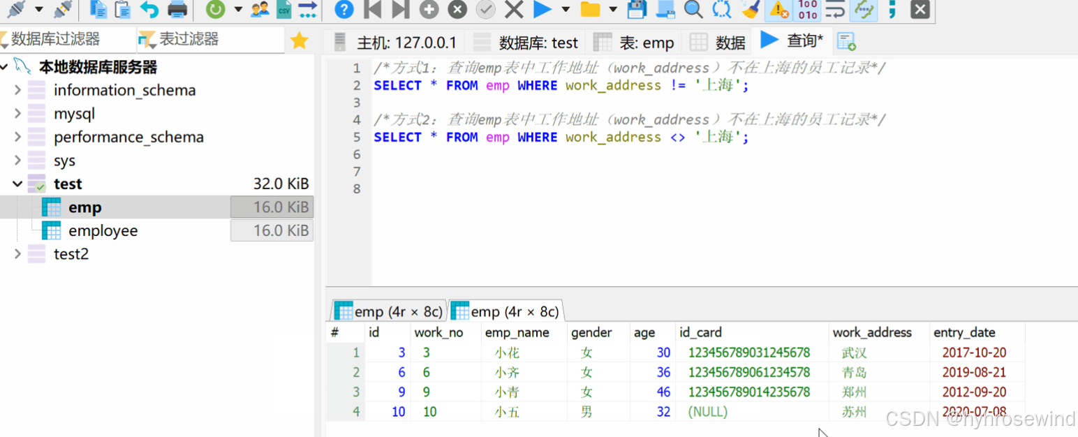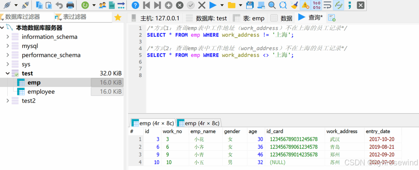 条件查询(WHERE),比较运算符,逻辑运算符