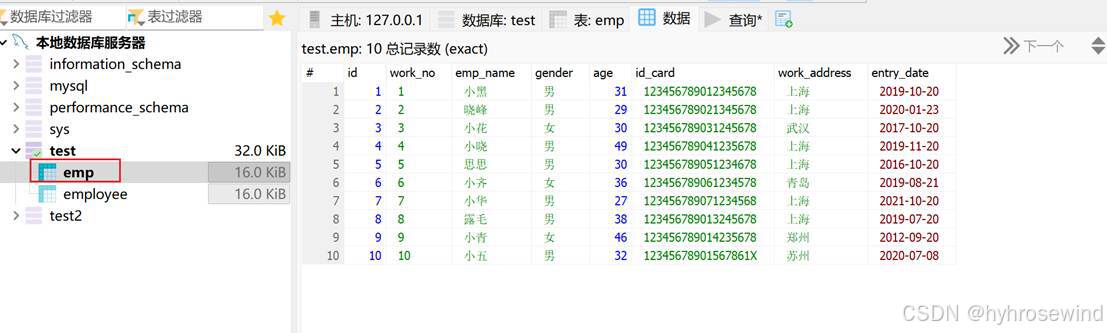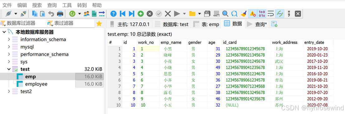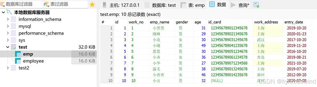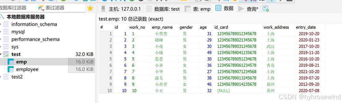 - 员工姓名(字符串类型,长度不超过10位)