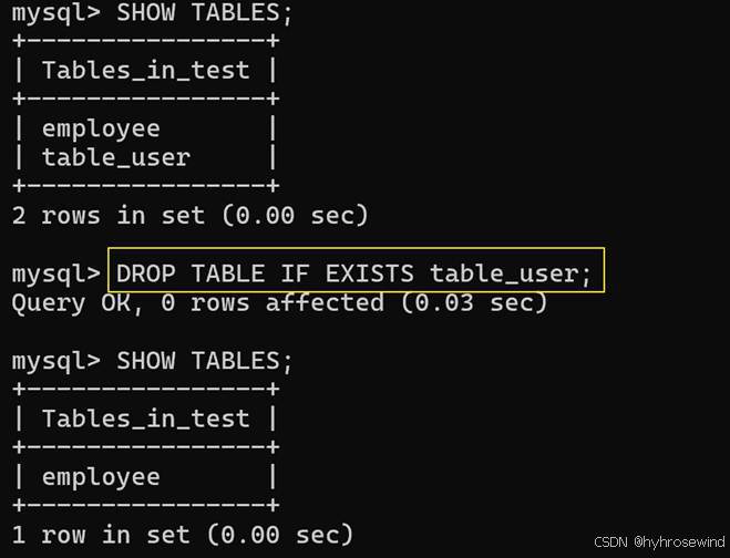 IF EXISTS:表示如果存在,则删除,否则不执行任何操作