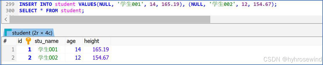 注意:一般id可设置为主键(PRIMARY KEY),id字段一般会设置为自增(AUTO_INCREMENT)
