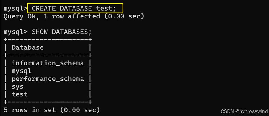 输入:CREATE DATABASE hyh2 CHARSET=UTF8MB4;