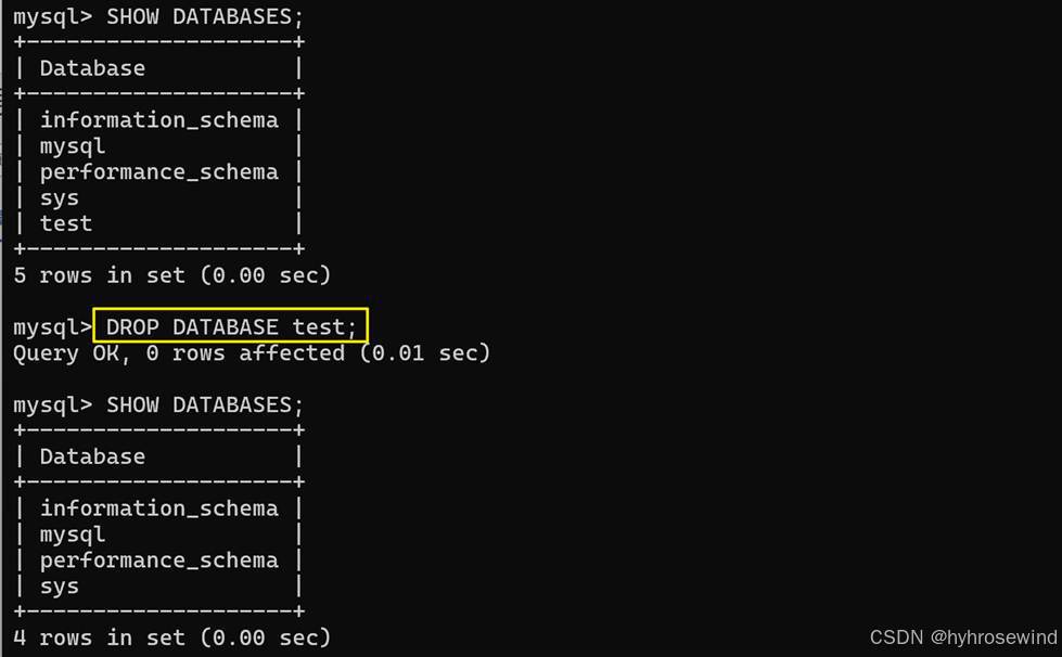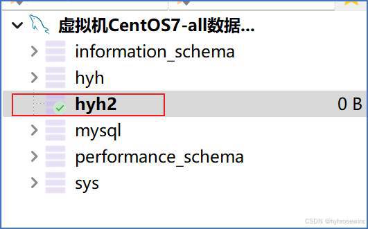 执行后,创建数据库hyh2成功