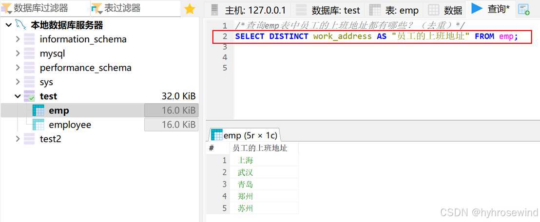 授予hyh@localhost用户的test数据库的所有表的所有权限