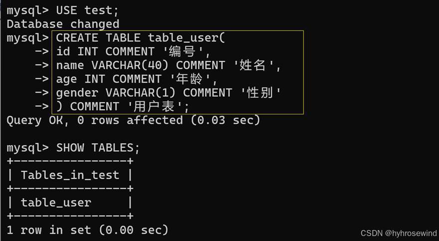 )[COMMENT 表注释]
