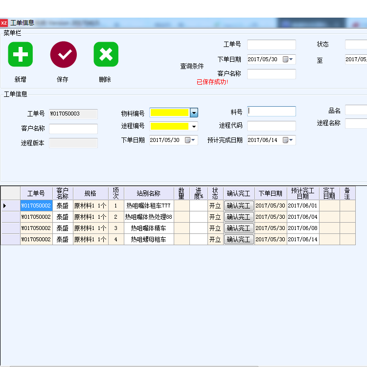 2.可以看生成到哪个工艺,是否完工,可以手动完工一个工单,工艺流程图绑定产品及生效的版本。