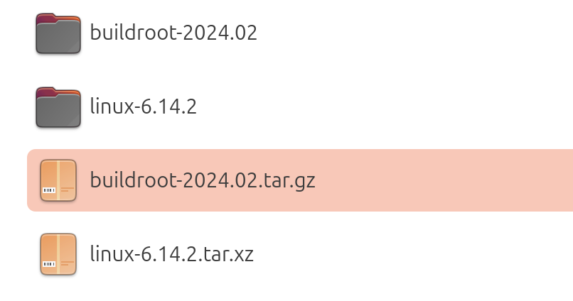 tar -xvf linux-6.14.2.tar.xz tar -xvf buildroot-2024.02.tar.gz