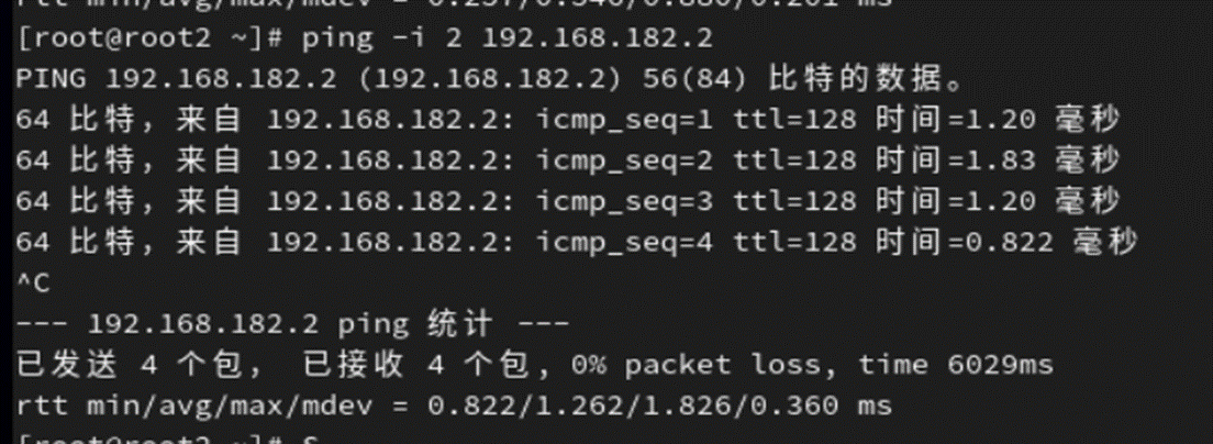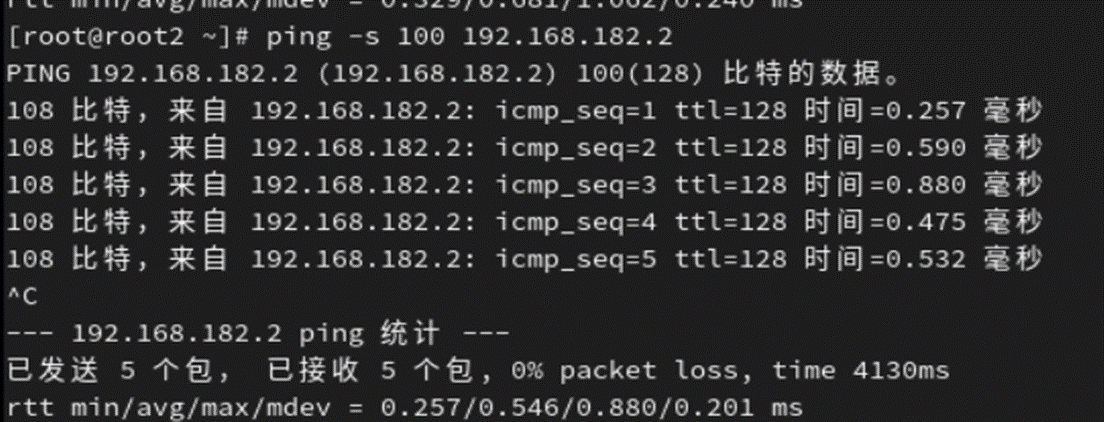 - -c 数字:用于设定本命令发出的ICMP消息包的数量,若无此选项,则会无限次发送消息包直到用户 按【Ctrl+C】组合键才终止命令。