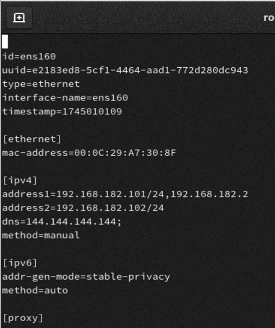 - 在RHEL9上,使用NM进行网络配置,ifcfg (也称为 文件)将不再是网络配置文件的主存储。虽然 ifcfg 样式仍然可用,但它不再是 NetworkManager 存储新网络配置文件的默认位置。从 RHEL 9.0 开始,RHEL 以 key-file 格式在 /etc/NetworkManager/system-connections/ 中存储新的网络配 置。配置以旧格式存储在 /etc/sysconfig/network-scripts/ 中的连接仍然可以正常工作。对现有配 置集的修改会继续更新旧的文件。