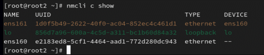 #nmcli con show ens160