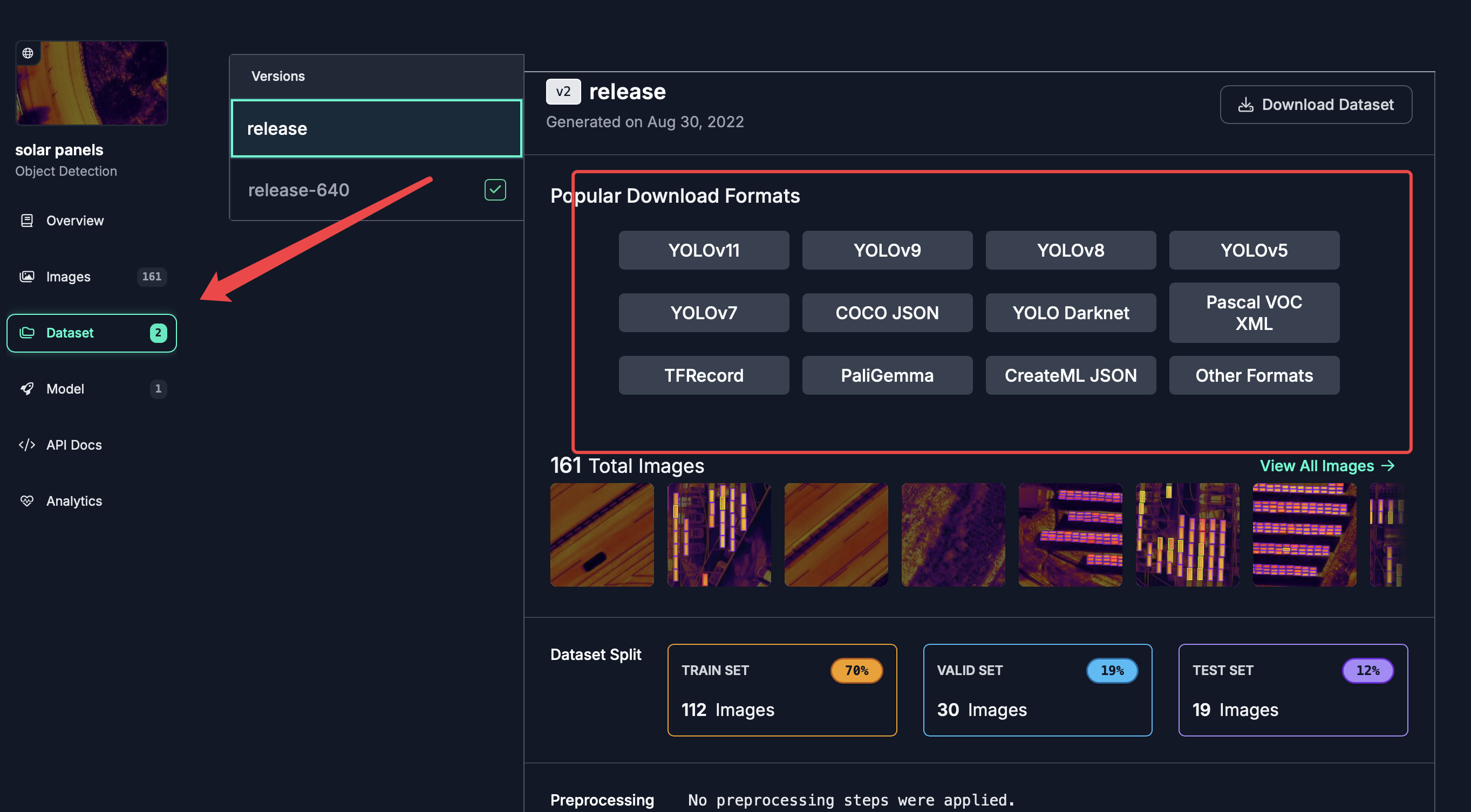 可以点击红色箭头所指,右边是可供选择的一些yolo模型的格式