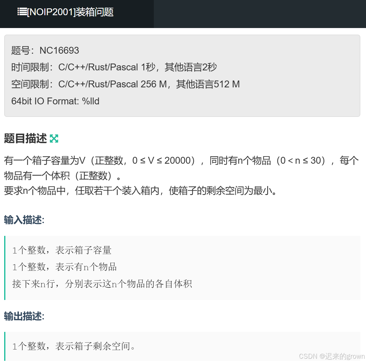 题目要求我们箱子的剩余容量最小,我们反过来理解,就是我们在