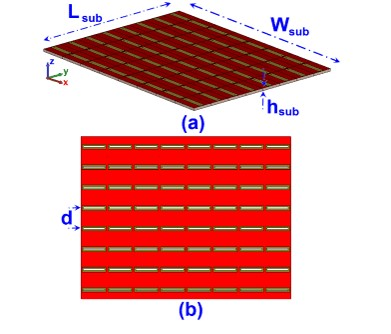 平面阵列天线:a)侧视图 b)俯视图